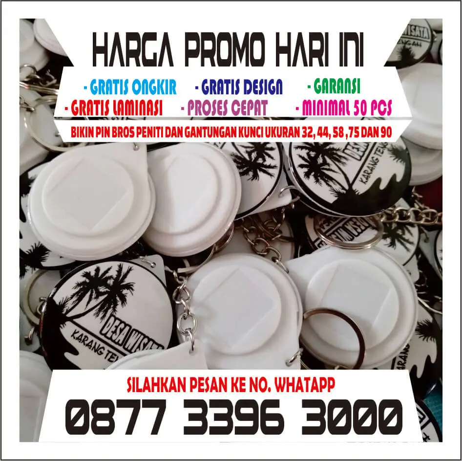 Sekarang tidak perlu khawatir membuat pin bros dan gantungan kunci murah bisa gratis pengirimannya selama masih ada promo jangan lewatkan ya menguntungkan sekali dapat mengurangi bajet ongkir dan tidak perlu lagi repot-repot memikirkan biaya untuk pengirimannya anda tinggal chackout ke nomor wa admin kami